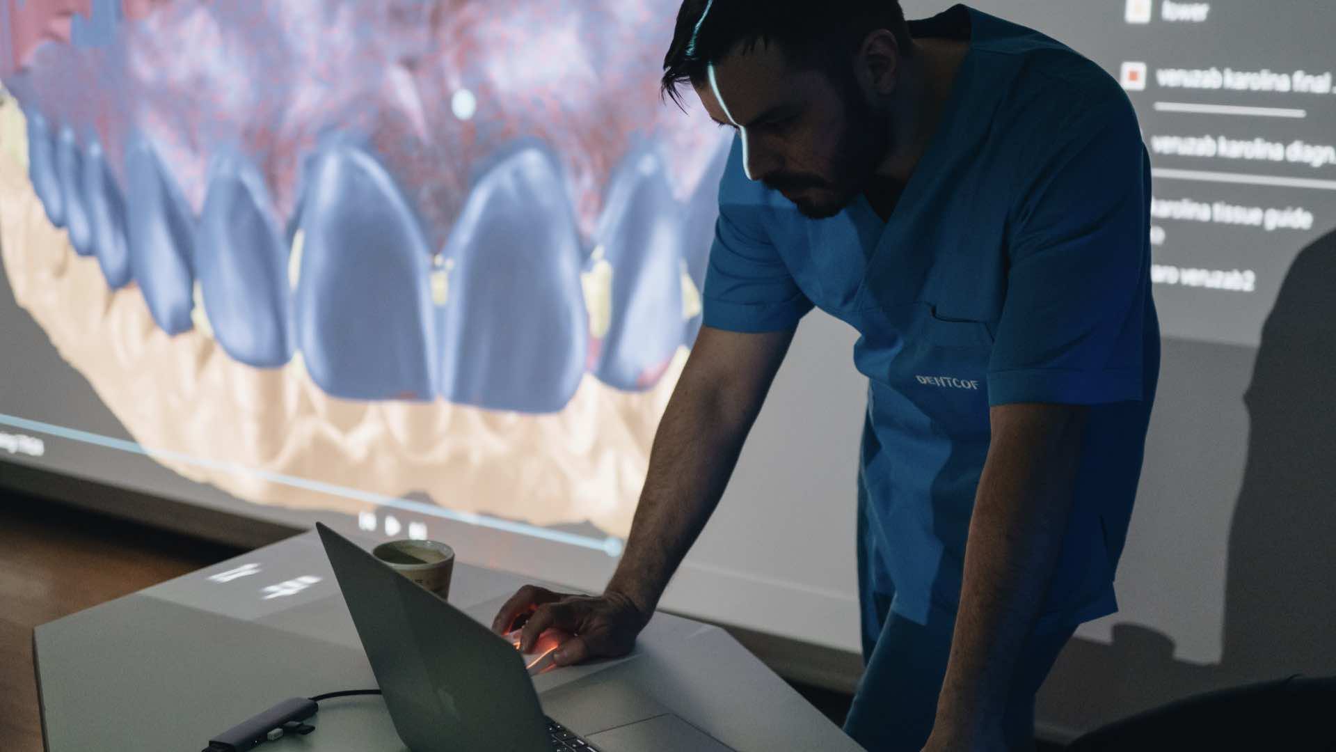ما منبلّش بأي علاج قبل ما يكون عندنا رؤية واضحة للهدف – ابتسامة مريحة، متناسقة، وصحيّة، بتشبهك إنت. بنبدأ المرحلة الثانية من رحلتك بتصميم ثلاثي الأبعاد مخصّص، مبني على كل المعطيات اللي جمعناها من الزيارة الأولى. كأنك بتبني بيت العمر: لازم يكون فيه مخطط هندسي، دراسة تفصيلية، ومحاكاة دقيقة لكل تفصيلة قبل التنفيذ.